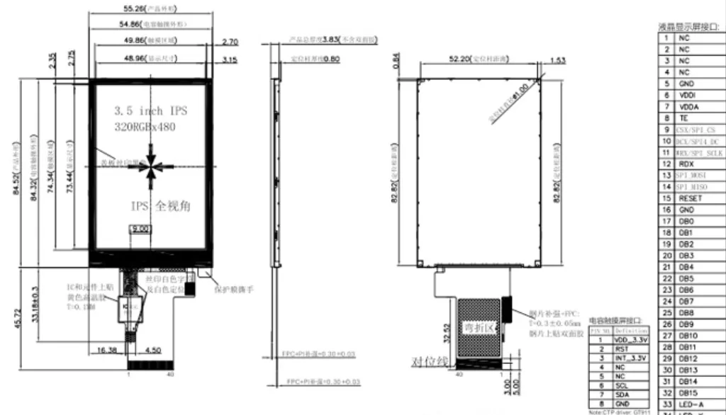 3.5 انچ IPS TFT LCD ٹچ اسکرین