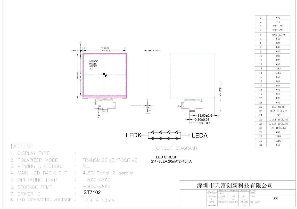 سمارٹ ہوم کے لئے 3.95 انچ چھوٹے سائز کے آئی پی ایس ان سیل ٹچ اسکرین ماڈیول ڈبل سسٹم MIPI/IIC انٹرفیس اور ST7102I ڈرائیور IC (30ms کے تیز ردعمل کا وقت) کی حمایت کرتا ہے۔ ایک 4S2P ایل ای ڈی بیک لائٹ (40ma کم موجودہ) چمک اور بجلی کی کارکردگی کو متوازن کرتا ہے۔ 2.2 ملی میٹر پتلی ماڈیول کمپیکٹ انسٹالیشن کی سہولت فراہم کرتا ہے۔
